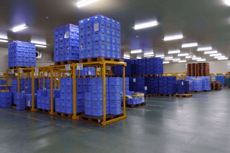 | C棟 | 冷蔵庫床面積 200坪 冷凍庫温度 -30℃ 冷蔵庫面積 184.5坪 冷蔵庫温度 5℃ 常温庫面積 76.7坪 |
